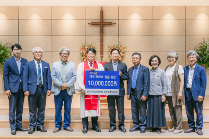 제주로아교회(최기완 담임목사) 후원금 전달(100만원)