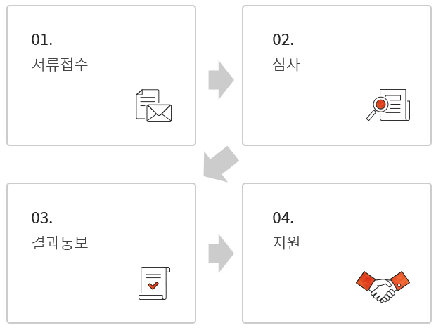 • 매월 10일까지 접수 받으며, 심사 후 매월 20일경 개별공지 됩니다.